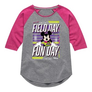 Disney - Field Day Fun Day - Toddler And Youth Girls Raglan Graphic T-Shirt - Add a touch of magic to your wardrobe with this graphic apparel featuring iconic Disney designs. Showcasing beloved characters and classic imagery, each piece combines nostalgic charm with modern style—perfect for Disney fans of all ages. Whether you're headed to the parks or just adding whimsy to your everyday look, these graphics bring the magic to life.