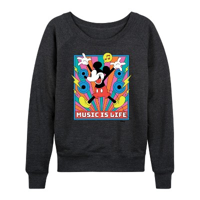 Women's Disney Firefighter Mickey & Friends Lightweight French Terry Wide Neck Long Sleeve Graphic Shirt - Heather Charcoal - X-Large