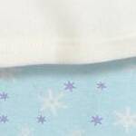 Ruffle peplum top with soft hand screen print artwork featuring Elsa with glitter snowflakes and the phrase "I am fearless," plus sky blue leggings with an all-over snowflake print.