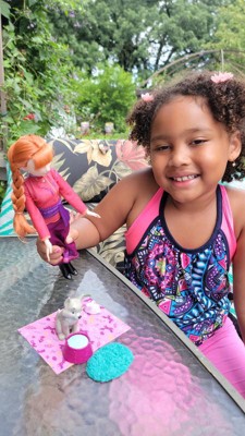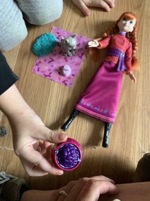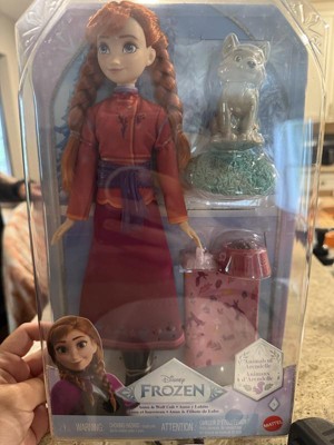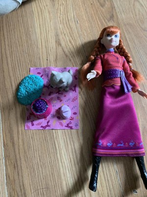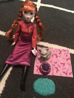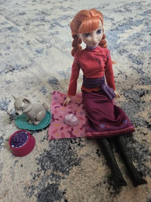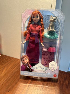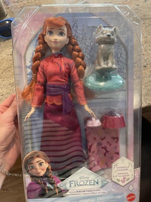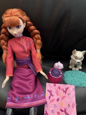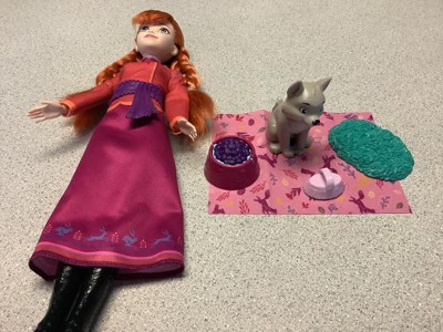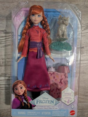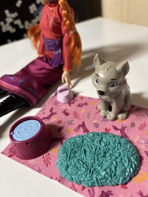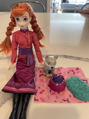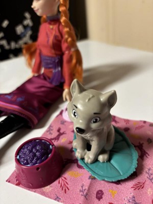 Disney Frozen Anna Fashion Doll & Wolf Cub Figure with 4 Nurturing Accessories Inspired by Movie