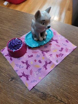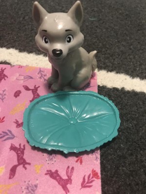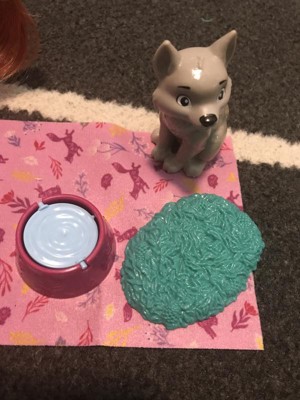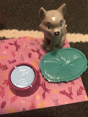 [This review was collected as part of a promotion.] This play set is so cute. The set includes Anna and a wolf pup. The wolf has a dog/water bowl. The top of the bowl can flip over, one side is food and the other is water. There is also a blanket for the pup to lie on or under however you want to play with it. The Anna doll has red braided hair, a purple dress and black boots. This play set allows for a lot of open ended play.