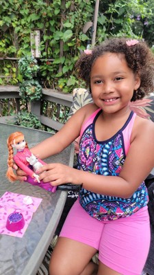 [This review was collected as part of a promotion.] This Anna doll comes with several accessories which my child seems to enjoy. The wolf pup is a decent size, but the additional accessories for it are on the smaller side so keep that in mind if there are younger siblings. Overall, she seems to enjoy it, but my compliant is about Anna’s hair. Upon removing from packaging, it is easy to pull out the braid tie. Feel this could be improved.