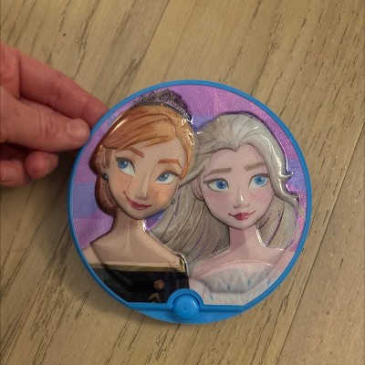 - Palette includes: 7 shimmery, cotton candy flavored lip balm wells with an application brush, all sitting in a circle slide out compact. All decorated with her faves from Frozen.
