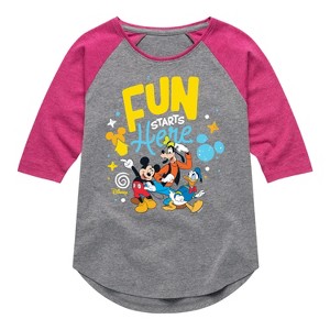 Girls' - Disney - Fun Starts Here Shirt Tail Raglan Graphic T-shirt - 1 of 3
