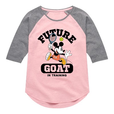 Mickey & Friends - Future GOAT in Training (Minnie) - Toddler And Youth Girls Raglan Graphic T-Shirt - Add a touch of magic to your wardrobe with this graphic apparel featuring iconic Disney designs. Showcasing beloved characters and classic imagery, each piece combines nostalgic charm with modern style—perfect for Disney fans of all ages. Whether you're headed to the parks or just adding whimsy to your everyday look, these graphics bring the magic to life.