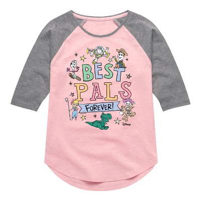 Disney - Gal Pals - Toddler & Youth Girls Raglan Graphic T-Shirt - Add a touch of magic to your wardrobe with this graphic apparel featuring iconic Disney designs. Showcasing beloved characters and classic imagery, each piece combines nostalgic charm with modern style—perfect for Disney fans of all ages. Whether you're headed to the parks or just adding whimsy to your everyday look, these graphics bring the magic to life.
