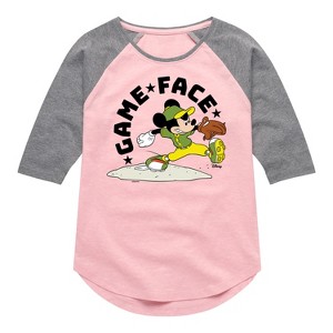 Girls' - Disney - Game Face Baseball Shirt Tail Raglan Graphic T-shirt - 1 of 3