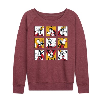 Women's Disney Goofy Gawrsh Lightweight French Terry Wide Neck Long Sleeve Graphic Shirt - Heather Maroon - Small