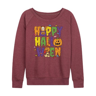 Women's Disney Happy Holidays Lightweight French Terry Wide Neck Long Sleeve Graphic Shirt - Heather Maroon - 4X
