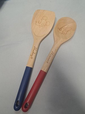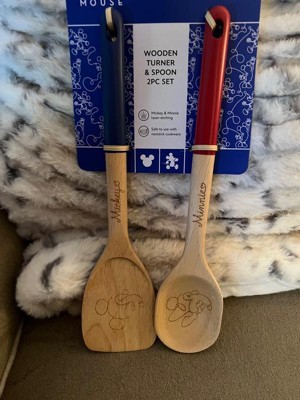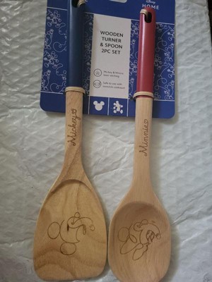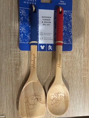 - THE WONDER OF DISNEY: The head of the blue-handled turner is decorated with fun line art of Disney Mickey Mouse and the red-handled spoon is decorated with Minnie Mouse - and each has the corresponding mouse signature on the handle - adding a touch of playfulness and vibrancy to your kitchen