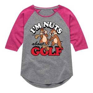 Disney - I'm Nuts About Golf - Toddler & Youth Girls Raglan Graphic T-Shirt - Add a touch of magic to your wardrobe with this graphic apparel featuring iconic Disney designs. Showcasing beloved characters and classic imagery, each piece combines nostalgic charm with modern style—perfect for Disney fans of all ages. Whether you're headed to the parks or just adding whimsy to your everyday look, these graphics bring the magic to life.