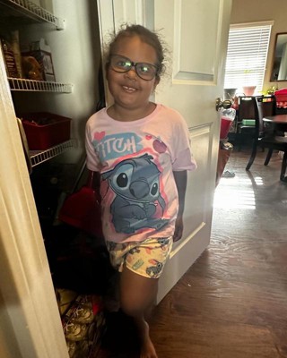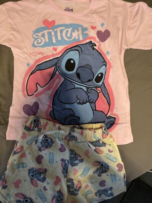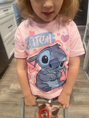 This outfit is really cute! I love the allover Stitch pattern on the shorts. It looks so cute with the pink shirt with the large Stitch picture. The outfit fits my 4 year nicely and it is loose and comfortable for her to play in
