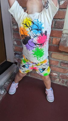 Cutest summer outfit ever! Love that it’s Mickey and bright colors. My daughter loves wearing it out. It’s comfy and washes well too! My daughter’s new favorite outfit that she wares all the time ! Want to buy more of these.