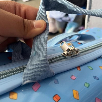 I had high hopes for this. I got it for my child when we go on our Christmas trip. Upon opening the box it looks fine but when I take it out of the box and look closer, the handles aren't "glued" down good so they're coming off. It's peeling, if that makes sense. The clear film on it is peeling and no it's not a protective film you peel off yourself. Its sturdy but disappointed in the condition I got mine in
