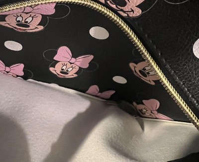 First off, this bag is SO cute! I’m obsessed with the faux leather fabric—it feels high-quality and not cheap. The Minnie Mouse print is vibrant, bold, and totally eye-catching. The golden zipper accents are such a standout feature—they elevate the design and give it a more mature, stylish vibe. It’s perfect for both kids and adults, making it super versatile. The size is just right—not too small or too large and I love the soft velvety lining inside. While there’s no internal pocket, the lining is great for safely tossing in electronics or screens without worry. This bag truly transcends age groups and is a fantastic choice for Disney fans of all ages!