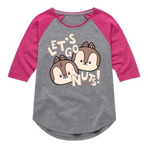 Disney - Let's Go Nuts - Toddler & Youth Girls Raglan Graphic T-Shirt - Add a touch of magic to your wardrobe with this graphic apparel featuring iconic Disney designs. Showcasing beloved characters and classic imagery, each piece combines nostalgic charm with modern style—perfect for Disney fans of all ages. Whether you're headed to the parks or just adding whimsy to your everyday look, these graphics bring the magic to life.