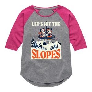 Disney - Let's Hit The Slopes - Toddler & Youth Girls Raglan Graphic T-Shirt - Add a touch of magic to your wardrobe with this graphic apparel featuring iconic Disney designs. Showcasing beloved characters and classic imagery, each piece combines nostalgic charm with modern style—perfect for Disney fans of all ages. Whether you're headed to the parks or just adding whimsy to your everyday look, these graphics bring the magic to life.