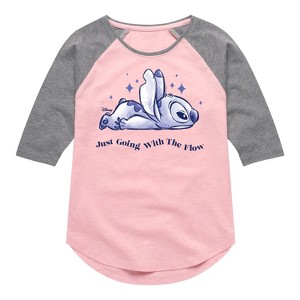Disney - Lilo & Stitch - Go With The Flow - Toddler & Youth Girls Raglan Graphic T-Shirt - Add a touch of magic to your wardrobe with this graphic apparel featuring iconic Disney designs. Showcasing beloved characters and classic imagery, each piece combines nostalgic charm with modern style—perfect for Disney fans of all ages. Whether you're headed to the parks or just adding whimsy to your everyday look, these graphics bring the magic to life.