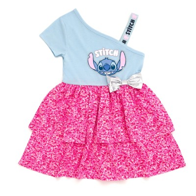 • Awesome screen print design with silver glitter artwork on top and sublimation print design on skirt; Asymmetrical top neckline; Pull on closure; Fashionable tiered ruffle hem; 3D bow at waist