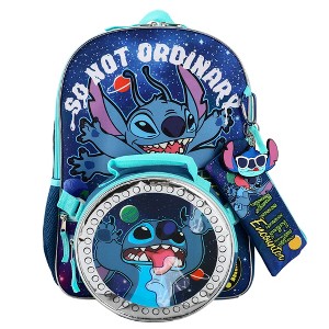 5-PIECE SET: The Disney Lilo & Stitch 5-Piece Backpack et includes a 16-inch backpack, insulated lunch bag, utility case, molded rubber keychain, and carabiner.