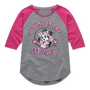 Disney - Living In The Moment - Toddler & Youth Girls Raglan Graphic T-Shirt - Add a touch of magic to your wardrobe with this graphic apparel featuring iconic Disney designs. Showcasing beloved characters and classic imagery, each piece combines nostalgic charm with modern style—perfect for Disney fans of all ages. Whether you're headed to the parks or just adding whimsy to your everyday look, these graphics bring the magic to life.