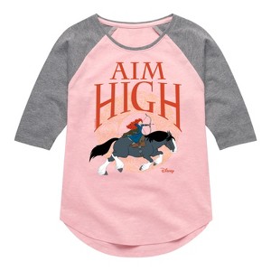 Disney Brave - Merida Aim High Bow & Arrow - Toddler & Youth Girls Raglan Graphic T-Shirt - Add a touch of magic to your wardrobe with this graphic apparel featuring iconic Disney designs. Showcasing beloved characters and classic imagery, each piece combines nostalgic charm with modern style—perfect for Disney fans of all ages. Whether you're headed to the parks or just adding whimsy to your everyday look, these graphics bring the magic to life.
