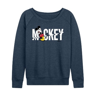Women's - Disney - Mickey 1928 Collegiate Lightweight French Terry Wide Neck Long Sleeve Graphic Shirt