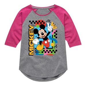 Girls' - Disney - Mickey 90s Nostalgia Shirt Tail Raglan Graphic T-shirt - 1 of 3