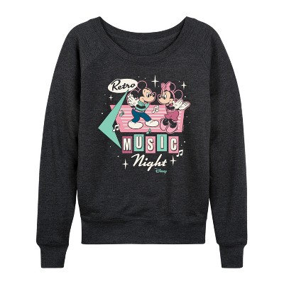 Women's Disney Mickey Americana Baseball Lightweight French Terry Wide Neck Long Sleeve Graphic Shirt - Heather Charcoal - 2 X-Large