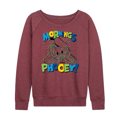 Women's Disney Mickey And Minnie Doodles Lightweight French Terry Wide Neck Long Sleeve Graphic Shirt - Heather Maroon - 4X