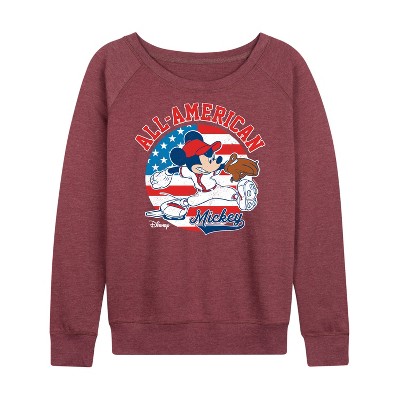 Women's Disney Mickey And Twin Tigers Lightweight French Terry Wide Neck Long Sleeve Graphic Shirt - Heather Maroon - 1X