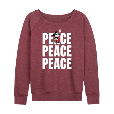 Women's Disney Mickey Expression Boxes Lightweight French Terry Wide Neck Long Sleeve Graphic Shirt - Heather Maroon - Small