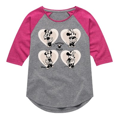 Girls' Disney Mickey & Friends Shirt Tail Raglan Graphic T-shirt - Athletic Heather/Fuchsia - Medium