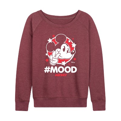 Women's Disney Mickey & Friends Lightweight French Terry Wide Neck Long Sleeve Graphic Shirt - Heather Maroon - X-Large