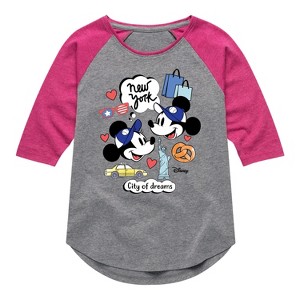 Disney - Mickey & Friends - New York City of Dreams - Toddler And Youth Girls Raglan Graphic T-Shirt - Add a touch of magic to your wardrobe with this graphic apparel featuring iconic Disney designs. Showcasing beloved characters and classic imagery, each piece combines nostalgic charm with modern style—perfect for Disney fans of all ages. Whether you're headed to the parks or just adding whimsy to your everyday look, these graphics bring the magic to life.