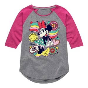 Disney - Mickey & Friends - Minnie Mouse - Happiness - Toddler And Youth Girls Raglan Graphic T-Shirt - Add a touch of magic to your wardrobe with this graphic apparel featuring iconic Disney designs. Showcasing beloved characters and classic imagery, each piece combines nostalgic charm with modern style—perfect for Disney fans of all ages. Whether you're headed to the parks or just adding whimsy to your everyday look, these graphics bring the magic to life.