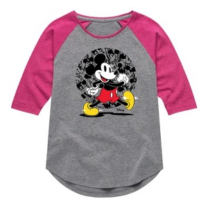 Disney - Mickey & Friends - Happy Mickey - Toddler And Youth Girls Raglan Graphic T-Shirt - Add a touch of magic to your wardrobe with this graphic apparel featuring iconic Disney designs. Showcasing beloved characters and classic imagery, each piece combines nostalgic charm with modern style—perfect for Disney fans of all ages. Whether you're headed to the parks or just adding whimsy to your everyday look, these graphics bring the magic to life.