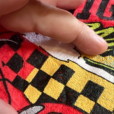 It’s made out of towel material. The decal is peeling in places. It feels cheap