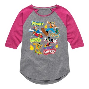 Disney - Mickey Mouse & Friends Skater Crew - Toddler & Youth Girls Raglan Graphic T-Shirt - Add a touch of magic to your wardrobe with this graphic apparel featuring iconic Disney designs. Showcasing beloved characters and classic imagery, each piece combines nostalgic charm with modern style—perfect for Disney fans of all ages. Whether you're headed to the parks or just adding whimsy to your everyday look, these graphics bring the magic to life.