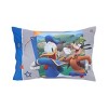 Disney Mickey Mouse Mickey Having Fun 2-Pack Toddler Sheet Set - Your toddler's favorite Disney characters in bright, primary colors will make naptime and bedtime a delight! Set includes a toddler-size fitted sheet featuring Mickey Mouse, Donald Duck and Goofy, and a double-sided pillow case with a winking Mickey on the front and playful Donald and Goofy on the back. Your toddler will love going to bed with this fun sheet set.