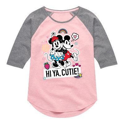Girls' Disney Mickey Mouse Shirt Tail Raglan Graphic T-shirt - Light Pink/Ath Hea - Large