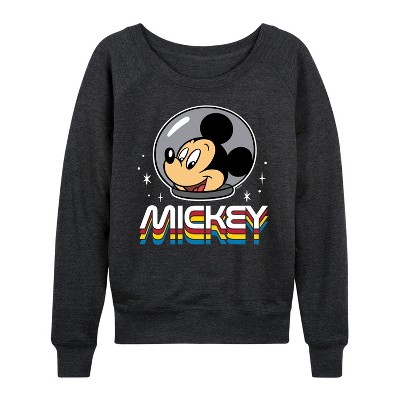 Women's Disney Mickey Mouse Original Badge Lightweight French Terry Wide Neck Long Sleeve Graphic Shirt - Heather Charcoal - Small