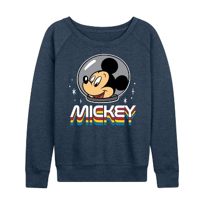 Women's Disney Mickey Mouse Original Badge Lightweight French Terry Wide Neck Long Sleeve Graphic Shirt - Heather Indigo - Medium