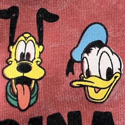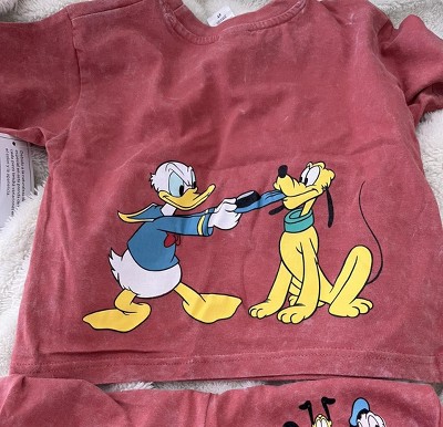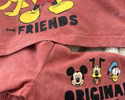 Get ready for a fun adventure in this cute and comfy Mickey Mouse outfit. This fashionable short sleeve shirt and shorts set features an easy-to-dress design and colorful artwork on the front and back of Mickey Mouse and his friends Goofy, Pluto and Donald Duck. Soft and stylish, this cool Disney outfit is made of 100% cotton so your kid stays comfortable all day long. Due to the nature of the special wash on this garment, every piece will have variations of color and appearance.