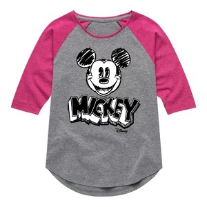Disney - Mickey Mouse Sketched - Toddler & Youth Girls Raglan Graphic T-Shirt - Add a touch of magic to your wardrobe with this graphic apparel featuring iconic Disney designs. Showcasing beloved characters and classic imagery, each piece combines nostalgic charm with modern style—perfect for Disney fans of all ages. Whether you're headed to the parks or just adding whimsy to your everyday look, these graphics bring the magic to life.