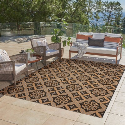 Disney Mickey Mouse Surfboard Coastal Graphic Brown Black Flatweave Indoor Outdoor Area Rug, 7'10"x10'