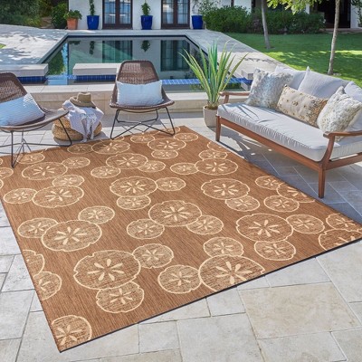 Disney Mickey Mouse Surfboard Coastal Graphic Red Beige Flatweave Indoor Outdoor Area Rug, 5'3"x7'