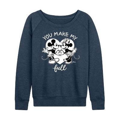 Women's Disney Mickey Patterned Trees Lightweight French Terry Wide Neck Long Sleeve Graphic Shirt - Heather Indigo - 1X