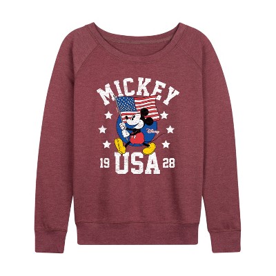 Women's Disney Mickey Pluto Just Want All Dogs Lightweight French Terry Wide Neck Long Sleeve Graphic Shirt - Heather Maroon - Small