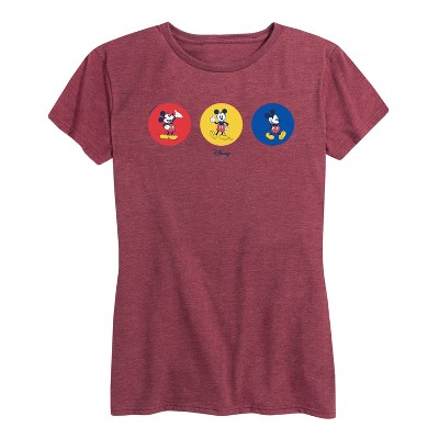 Women's Disney Mickey Poses Grid Short Sleeve Graphic T-Shirt - Heather Burgundy - 2 X-Large